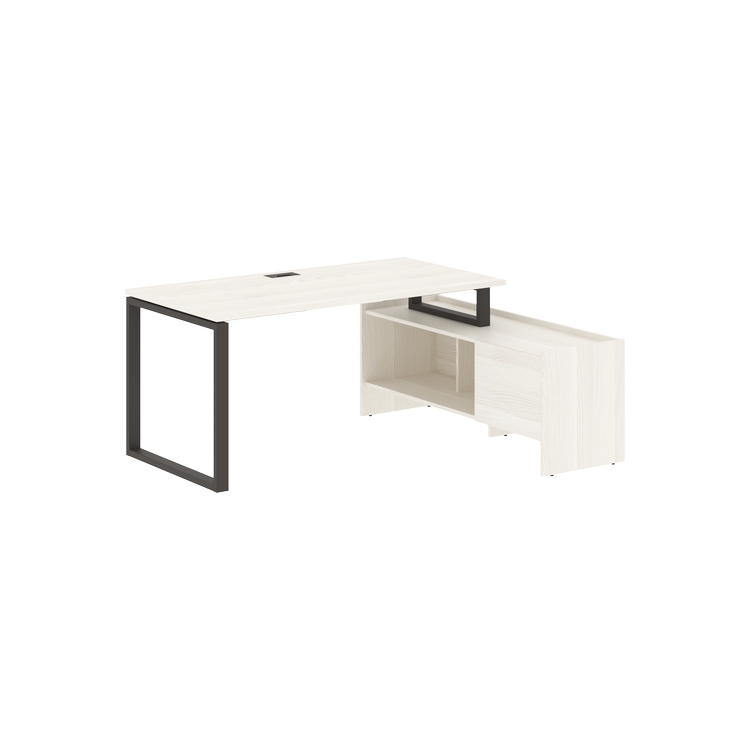 Столешница глубиной 800 мм из ЛДСП т.25 мм с кромками ПВХ по периметру т.2 мм. Комплектуется металлическим кабель-каналом габаритом 160х80х25 мм.