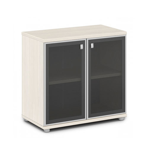 Двери стеклянные, распашные, низкие. Фасады в алюминиевом профиле толщиной 20 мм. Толщина стекла - 4 мм. Высота - 702 мм, крепление на 2-х петлях.